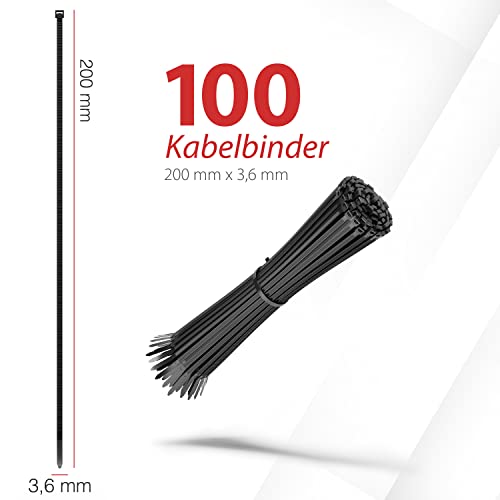 HeiKab 100 Fascette di cablaggio (LxP) 200 x 3,6 mm - Resistente ai raggi UV - Resistenza minima alla trazione 180N/18,3 kg - Nero -