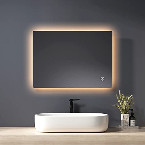 Heilmetz Specchio Bagno con Luce 70 x 50 cm, Specchio Bagno LED con Illuminazione + Interruttore Tattile + Antiappannamento + 3 Colori di Luce Dimmerabile, Specchio da Bagno