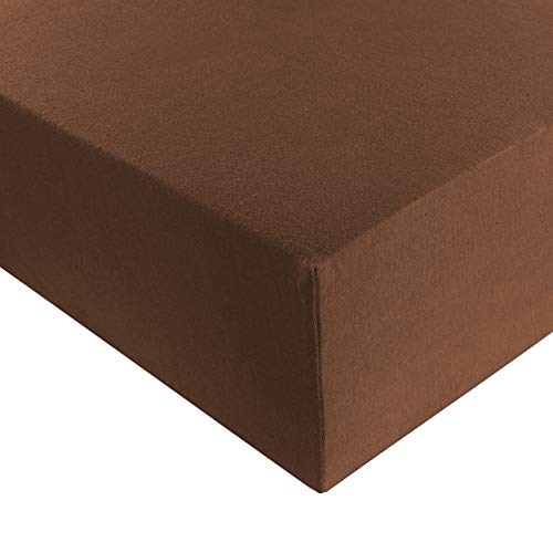 Heim24h, lenzuolo con angoli elasticizzati in jersey di cotone, Cotone, marrone, 220 x 220 cm