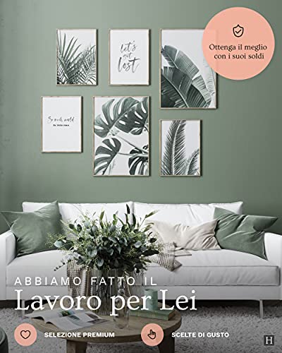 Heimlich Set di Stampe da Parete - Senza Cornici - Decorazioni da Muro per Soggiorno, Camera da Letto e Cucina - Poster Abbinati - | 2 x A3 & 4 x A4-30x42 & 21x30 | » Palme e Monstera «