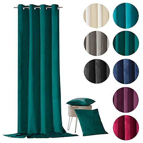 Heimtexland ® Velluto - Tenda con occhielli, in velluto, tipo 641, federa 40 x 40 cm, colore: smeraldo