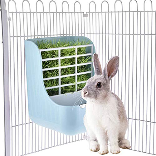 MATERIALE: La mangiatoia / rastrelliera per il fieno di coniglio è realizzata in plastica e metallo di alta qualità, non tossica e resistente. Sul bordo del porta fieno è rinforzato con lamiera per impedire allanimale di masticare.