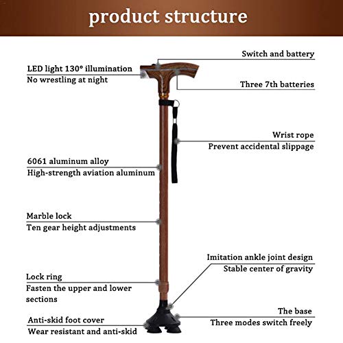 Materiale leggero, design con luce a LED: l'asta del bastone è realizzata in lega di alluminio, è molto leggera e il peso netto è di soli 0,48 kg. Il design con la luce a LED permette agli utenti di camminare quando è buio. Richiede batterie AAA a due sezioni. (Non incluse nel prodotto).