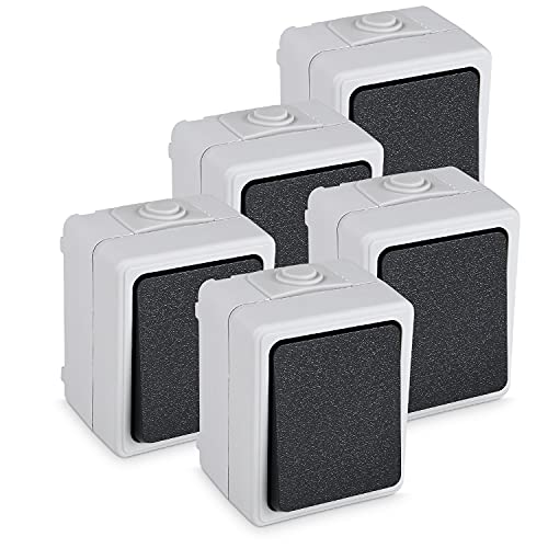 HEITECH Interruttore da esterno per ambienti umidi IP54 - Nuovo modello - 5x interruttore da esterno 1-gang AP - Commutatore 250V 10A