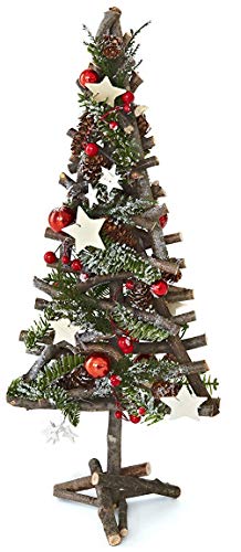 HEITMANN DECO 92507 Albero di Legno, Decorata, Legno, Natura/Verde/Rosso, 7 x 24 x 55 cm