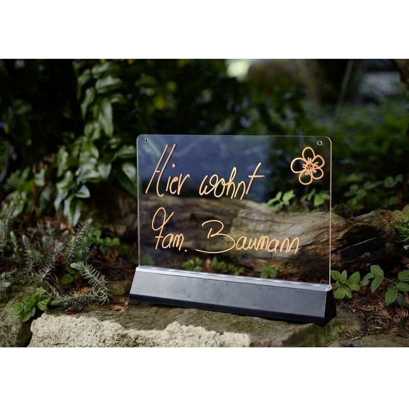 Dettagli tecnici Accumulatore NiMH Attacco LED a montaggio fisso Caratteristiche della lampada funzionamento a batteria, con picchetto di terra, con sensore crepuscolare Colore luce Bianco luce del giorno Contenuto 1 pz. Dimensione del prodotto, larghezza 300 mm Dimensione, profondità 50 mm Dimensioni (L x A x P) 300 x 1160 x 50 mm Dimensioni prodotto Altezza 1160 mm Dimmerabile (lampadina LED) No Numero di lampadine 10 Tempo di funzionamento (max.) 5 h Tensione di funzionamento 1.2 V, 2 V Tipo di protezione IP44 Tipo lampadina LED (monocolore) Tipo prodotto Lampada LED per giardino Tensione pannello solare: 2 V. Pannello di scrittura a LED a energia solare Pannello di scrittura a LED a energia solare SLATE con picchetto di terra. Testo tradotto automaticamente Punti di forza e dettagli Pannello di scrittura a LED a energia solare incl. PennaFunzionamento solarePer uso esterno Caratteristiche Pannello di visualizzazione trasparente, con apertura laterale e celle solari con