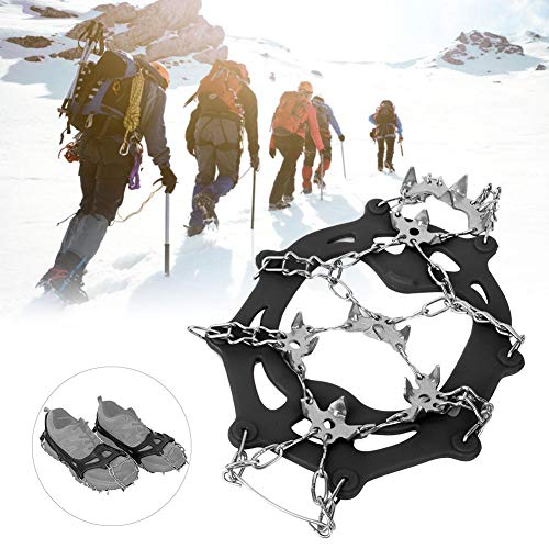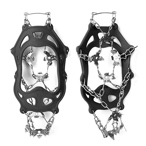 Heitune 19 Denti da Esterno in Acciaio Inossidabile Antiscivolo Scarpe da Ghiaccio da Sci Artigli Copertura ramponi Accessori Arrampicata(M-19 Denti Neri)