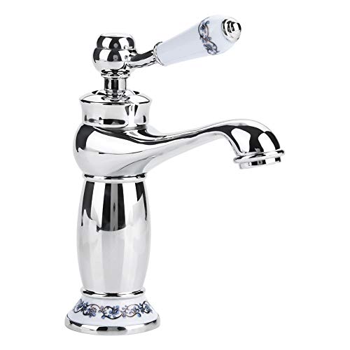 Heitune Motivo Floreale Miscelatore Rubinetto Fredda/Rubinetto di Acqua Calda Compatibile con Bagno del Dispersore del Bacino (Cromato)