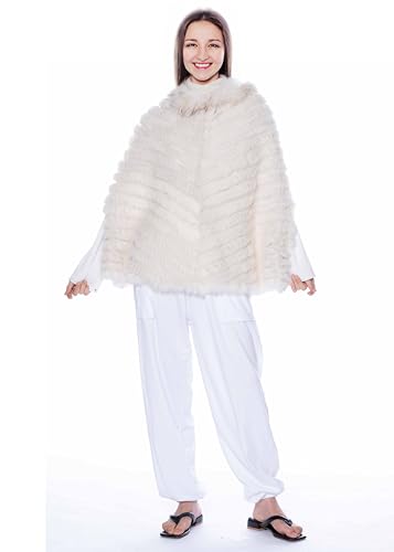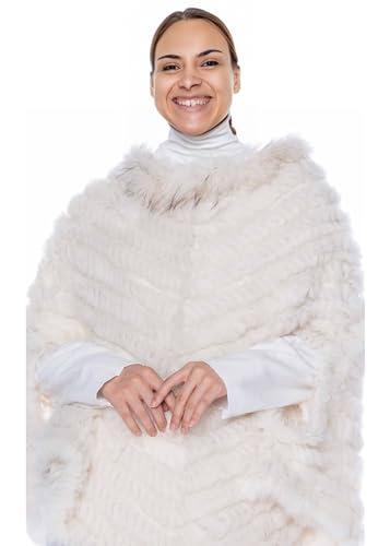 HEIZZI Naturale Pullover a Maglia Pelliccia di Coniglio Poncho con Raccoon Fur