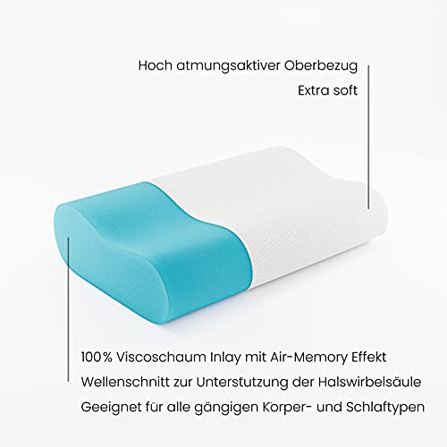 HEJMOON Cuscino ortopedico per chi dorme sul fianco, extra ergonomico grazie alla schiuma viscoelastica in memory foam, lavabile e sostenibile