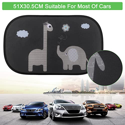 Hejo Tendine Parasole Auto Bambini, 50x30cm per Protezione Solare dai Raggi UV, 2 Pezzi (Elefante+Giraffa) Parabrezza Finestrino Laterale, Assorbimento Elettrostatico Design Autoadesivo, con Sacchetto