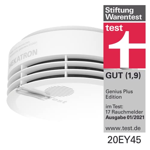 Hekatron Genius Plus Edition - Rilevatore di Fumo con Batterie Integrate e Cuscinetti Adesivi Inclusi - Set con 2 Rilevatori - Bianco