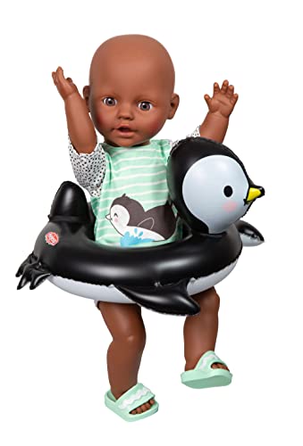 Set da bagno alla moda per bambole, composto da una tuta da nuoto in due pezzi, ciabatte da bagno color menta e un pneumatico da nuoto a forma di pinguino