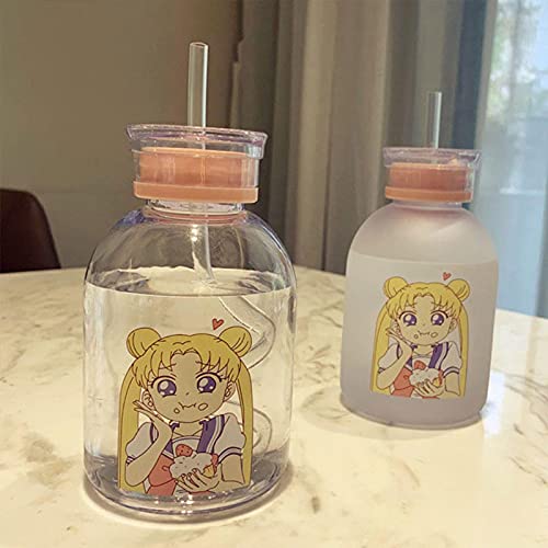 Heli Bottiglia d'Acqua in plastica Trasparente Sailor Moon Bottiglie d'Acqua smerigliate per Cartoni Animati Bicchieri a Prova di perdite Tazza Regalo per Ragazza Carina Studentessa