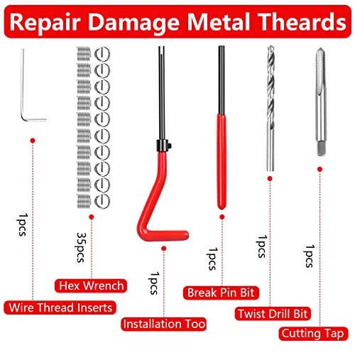 Helicoil M6 Inserti Filettati Barra Filettata M6 40 Pezzi Riparazione Filetti M6 x 1 mm Kit di Riparazione per Automotive Kit Riparazione Filetti M6 Kit di Riparazione per Automotive Ripristino