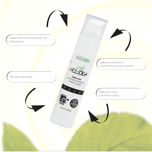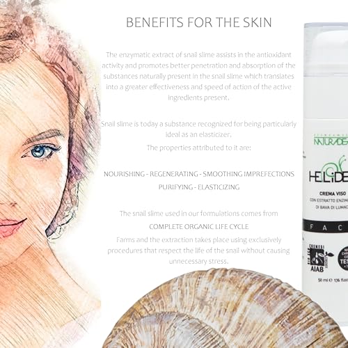HELIDEA Crema Viso con Bava di Lumaca, Estratto enzimatico di Bava di Lumaca, Acido ialuronico - Certificata Eco-Bio AIAB - Per pelli da normali a secche - 50ml
