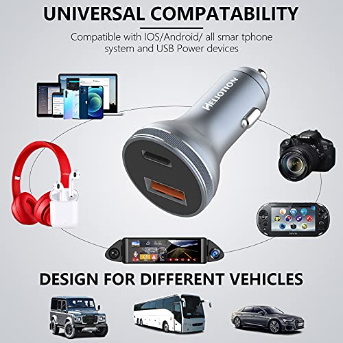 HELIOTION 48W Caricabatteria da auto USB C Universale Portatile doppia porta di ricarica PD e QC 3.0 Adattatore per accendisigari a ricarica rapida con cavo USB tipo C