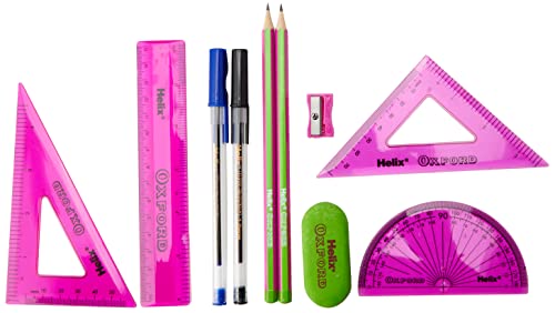 Include un set da geometria contiene 15 cm righello, goniometro a 180 ° e 45 ° e 60 ° Set Squares, 2 matite di grafite HB