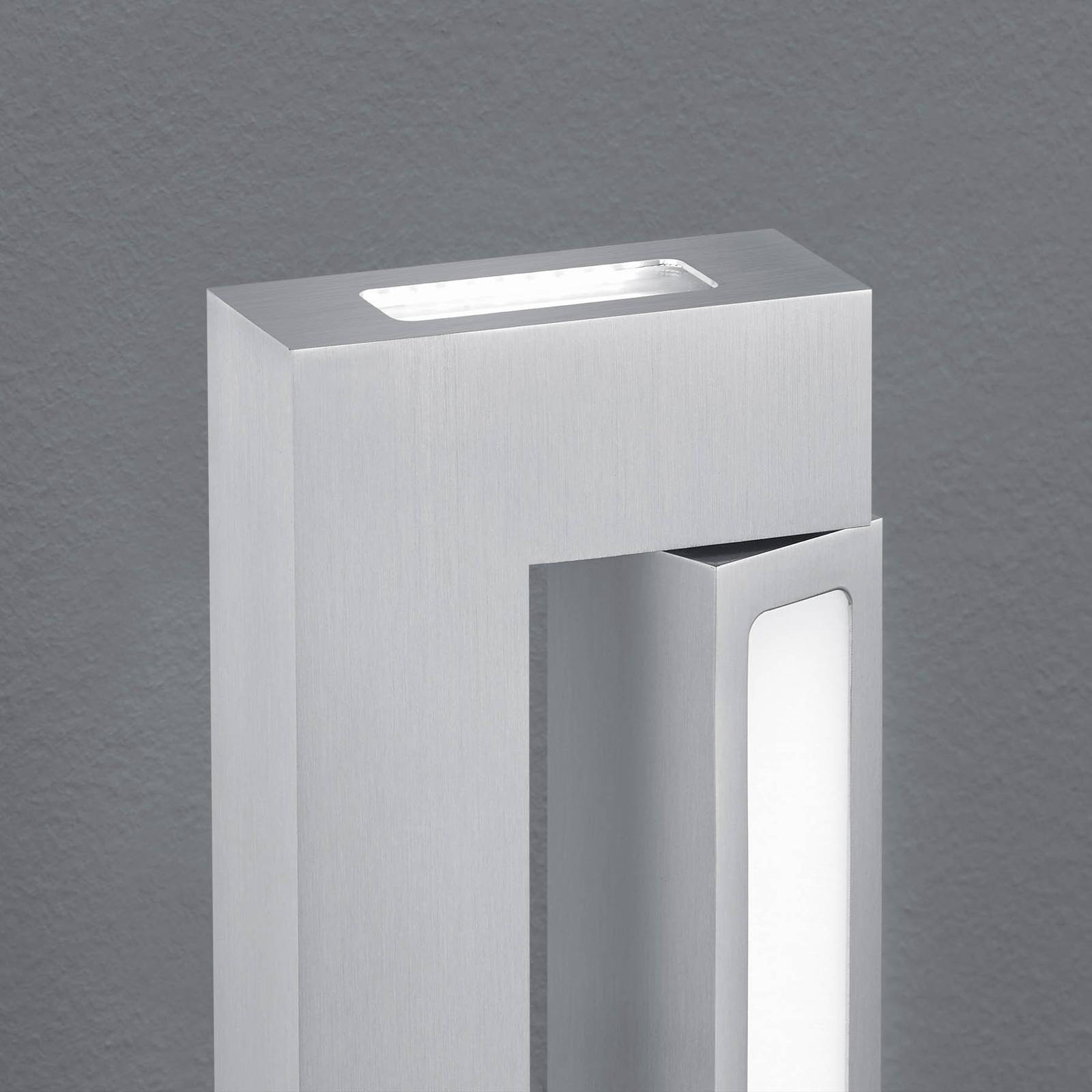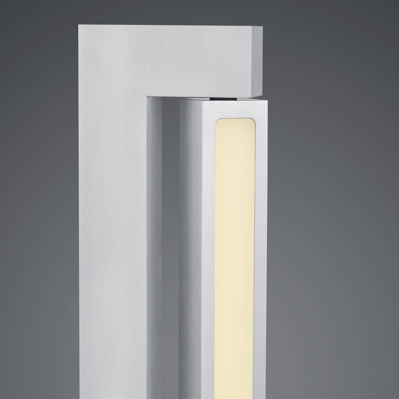 Lampada da terra a LED Turn con tecnologia CCT dimming e due sorgenti luminose La moderna lampada da terra Turn è un elegante oggetto di illuminazione per tutti coloro che vivono uno stile di interni moderno. Con il suo alloggiamento in alluminio anodizzato, Turn si adatta a quasi tutti gli ambienti con interni sofisticati. La lampada da terra ha un'altezza di 175 cm e dispone di due sorgenti luminose a LED che possono essere accese separatamente. Grazie alla tecnologia di dimmerazione CCT integrata, il colore della luce può essere regolato su vari livelli tra 2.700 e 6.000 Kelvin: dall'accogliente bianco caldo alla fresca luce diurna, fino al bianco freddo universale. Il colore della luce si imposta in modo semplice e comodo tramite gli interruttori. Anche il processo di dimmerazione viene controllato tramite questi interruttori. La sorgente luminosa, che si estende per tutta l'altezza dell'apparecchio, ha una forma angolare e può essere ruotata. In questo modo è possibile influenzare individualmente la direzione della luce e creare un'illuminazione indiretta oltre a quella diretta. La seconda sorgente luminosa è installata sopra la testa e irradia la sua luce verso l'alto per illuminare l'ambiente.
