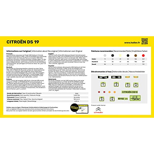 Heller - 1/43 Starter Kit Citroen Ds 19hel56162( 3279510561623) comes from Heller. Category - Modelbouw Kits, Number of pieces:, Difficulty Level:, Minimum age years, Type product: Vehicles, Subtype:, Scale:1:43, Assembly time (hours), , Color -, Dimensions