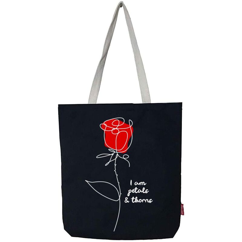 Borsa tote a spalla per trasportare i tuoi effetti personali con sicurezza. Modello: “IAMPETALS”. Colore: Écru/Nero.