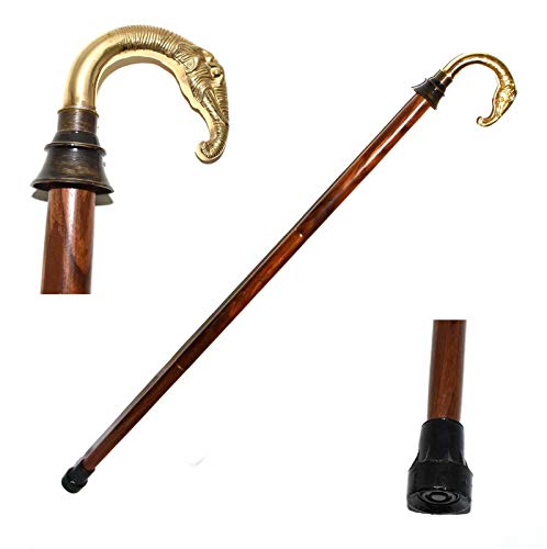 Hello.Nauticals.Store - Bastone decorativo da passeggio in legno da 94 cm, per uomo e donna, con manico in metallo e ottone (elefante)