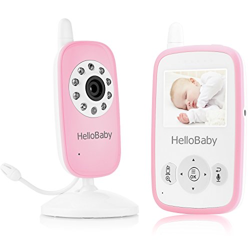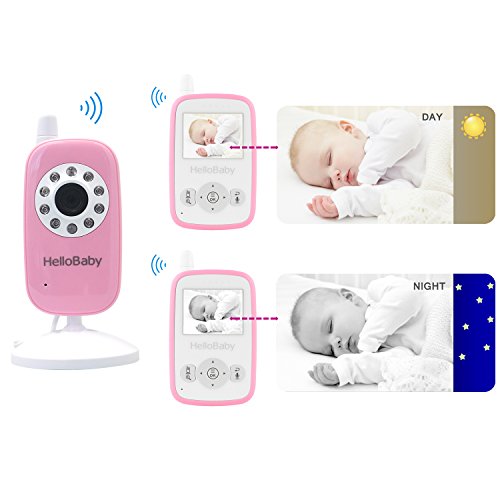 HelloBaby HB24 Wireless Digital Video Baby Monitor 2.4 TFT LCD Monitor del Bambino di Sorveglianza di Visione Notturna+Sensore di Temperatura (Bianco&Rosa)
