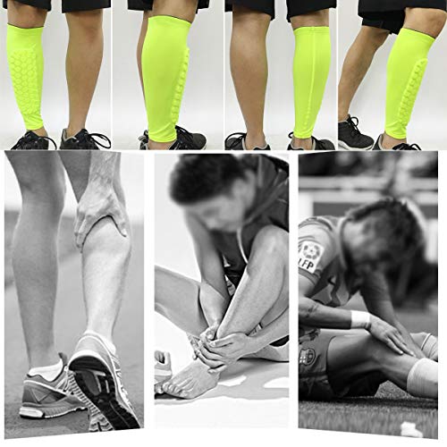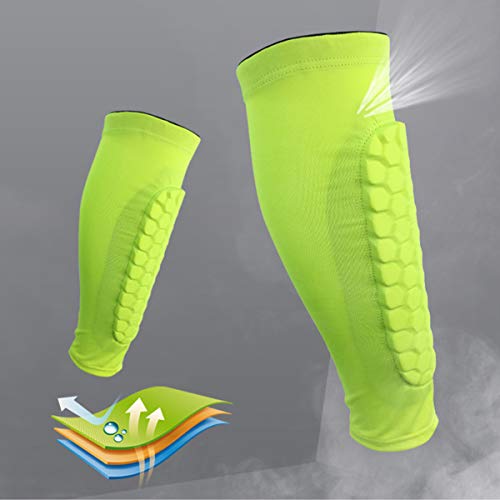 HelloCreate, coppia di parastinchi protettivi per polpacci, professionali, a prova di urti, per calcio, basket, ciclismo, arrampicata (Verde fluorescente, XL)