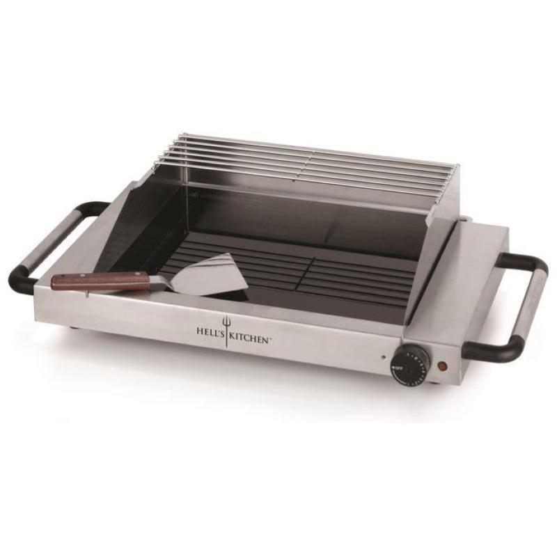 Hells kitchen barbecue da tavolo in acciaio inossidabile, rettangolare ceramica 1200 w