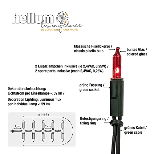 Hellum Catena luminosa colorate interni, catena di luci di Natale, corrente 230V, con 50 lampade colorate a forma tradizionale, 7,35m di cavo verde, luci di natale, illuminazione decorativa 835076