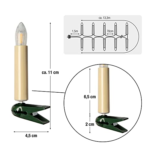 Connettore divisibile: L'installazione delle candele non è mai stata così facile, un connettore divisibile consente un fissaggio semplice e una regolazione individuale, mentre la spaziosa distanza di 70 cm della catena luminosa di Natale rende il montaggio facile.