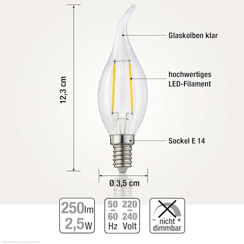 Hellum lampadina a vento filamento LED E14, 10 pezzi, 2W Lampadine di filamenti a LED fomra di fiamma, 250 lumen bianco caldo, corrisponde a lampadine a candela da 25 watt, 2700 Kelvin chiaro 207309