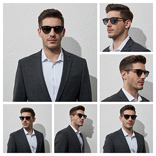 H HELMUT JUST Occhiali da Sole da Uomo Donna Ottagonali Vintage Polarizzati In Metallo Unisex (Nero+Amber Havana/Grigio Sfumato)