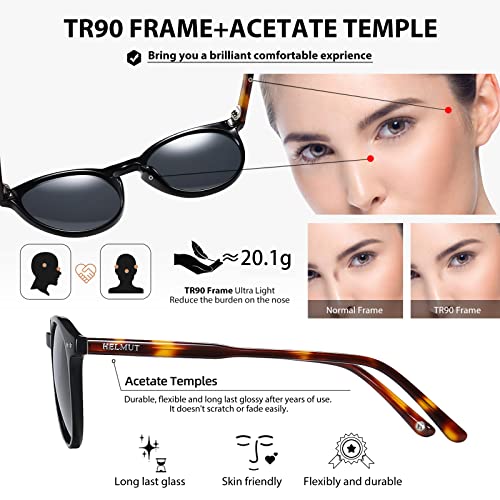 H HELMUT JUST Occhiali da Sole da Uomo Donna Rotondi Vintage Polarizzati Montatura Leggera in TR90 e Braccio in Acetato