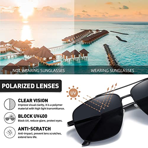 H HELMUT JUST Occhiali da Sole Uomo Polarizzati Quadrati Montatura Classico in Metallo Neri Lenti Antiriflesso