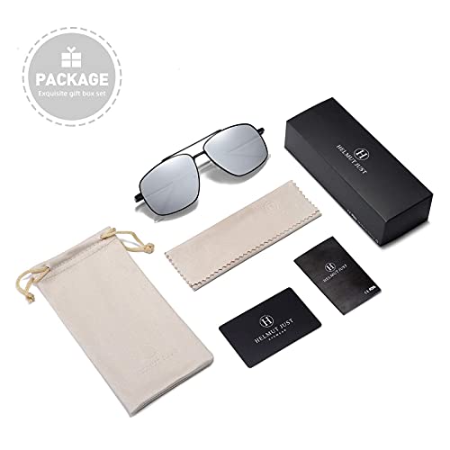 H HELMUT JUST Occhiali da Sole Uomo Quadrati Montatura Classico Polarizzati Lenti Antiriflesso Specchiato