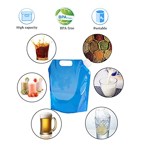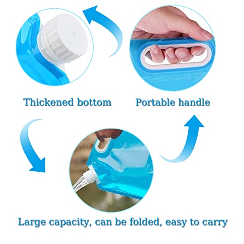 【Set essenziale da viaggio】Include 2 Contenitori Pieghevoli per Acqua blu,2 tipi di capacità,1pcs * 5 litri (30 x 32 cm) e 2pcs * 10 litri (37,5 x 42 cm). La bottiglia d'acqua pieghevole è più adatta come contenitore d'acqua mobile per l'escursionismo.