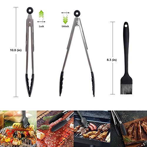 Silicone senza BPA ed approvati dalla FDA, Sicuri e sani per gustare cibi. Dimensioni dell'articolo (pinza: 34,5 cm, artigli da carne: 11.5x11.5x2.5cm, guanti: 27,5 x 17,5, pennello: 21 x 3,4 cm.