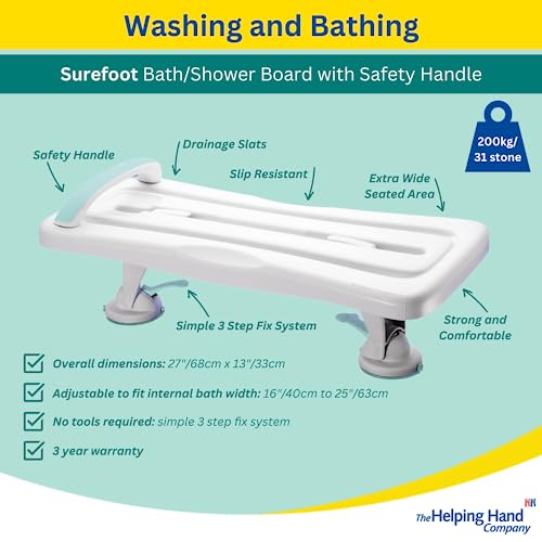 Helping Hand Company - Resistente tavola da doccia in plastica bianca con manico. Regolabile per adattarsi a bagni di larghezza da 66 a 71 cm. Portata massima: 31 kg