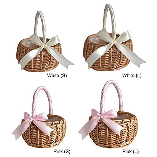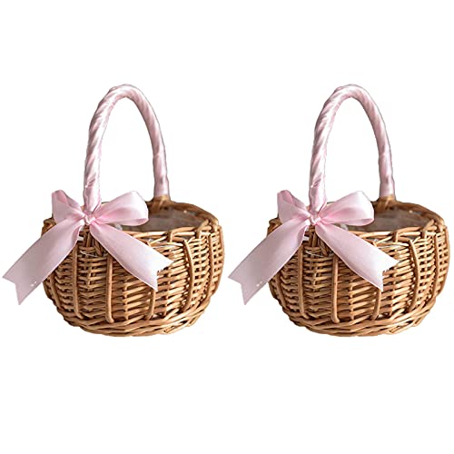 HELTER 2 cestini per fiori in vimini intrecciati, per matrimoni, fiori, ragazze, con manici e fiocco, cestino in tessuto rustico, per decorazione per la casa, colore: rosa