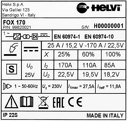 Helvi 99820021 Saldatrice Inverter Multiprocesso FOX 170 230V, 230 V, Rosso, Nero