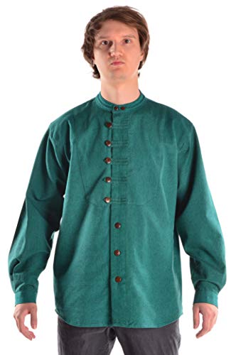 HEMAD Camicia di Cotone Medievale da Uomo Ache - Cotone - S Verde