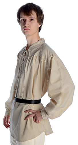 HEMAD Camicia in Cotone Medievale da Uomo - Alto Collare & Anteriore Allacciatura - XXXL Bianco Sporco