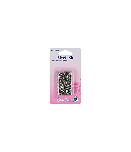 Hemline - Kit di rivetti, argento, nickel, bronzo, 20 rivetti rotondi, 7 mm, denim, per jeans e giacche in pelle