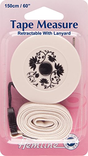 Hemline-Wht/Blk H253.LY metriche/imperiali-Metro a nastro, retrattile, chiusura magnetica e laccetto