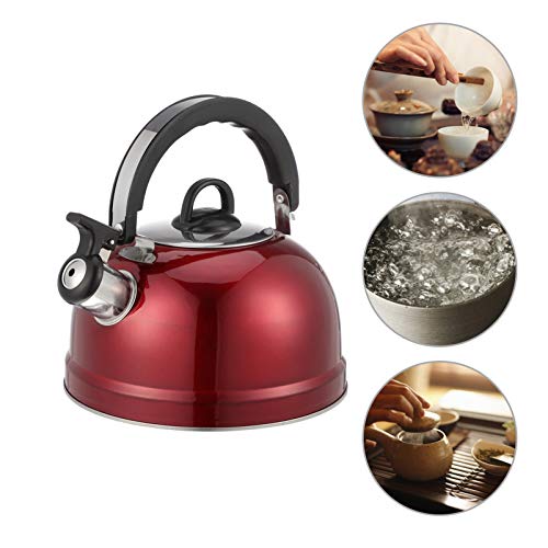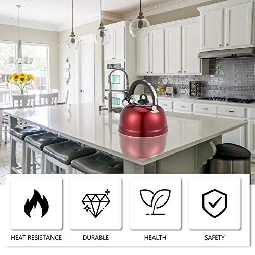 Hemoton 1. 2L tè Caldaia Caldaia di Fischio Bollitore in Acciaio Inox Fischio Beccuccio Anti-Caldo Maniglia tè Vasi per Stufa Top Rosso