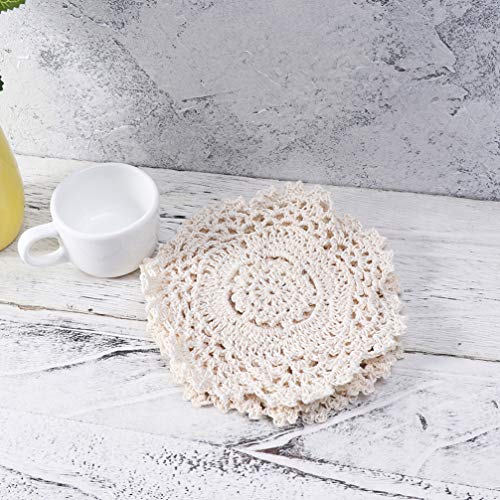 HEMOTON 6 Pezzi di sottobicchieri di Pizzo all'Uncinetto sottobicchieri di Cotone Fatti a Mano tappetini per Tazze Fatti a Mano tovagliette vuote tovagliette per la casa Ristorante Bar caffè (14 cm)