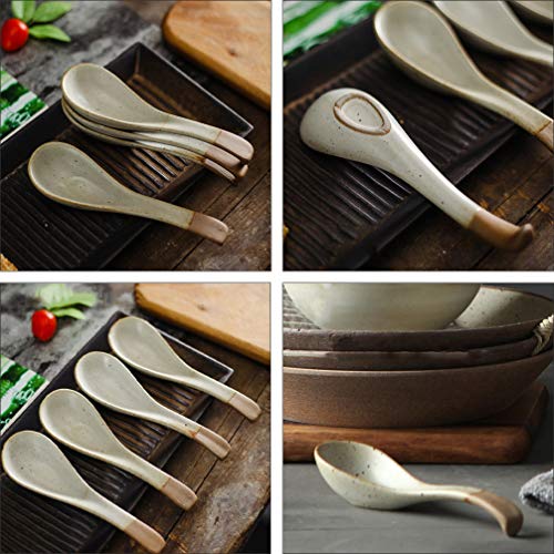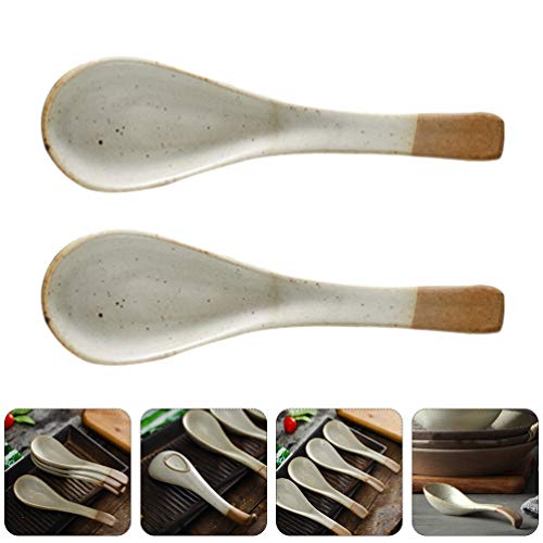 Hemoton 2 pz Round-Bottom Asia Porcellana Zuppa Cucchiaio Ceramica Rice Cucchiai Cinesi Won Ton Cucchiai per Casa Cucina Ristorante