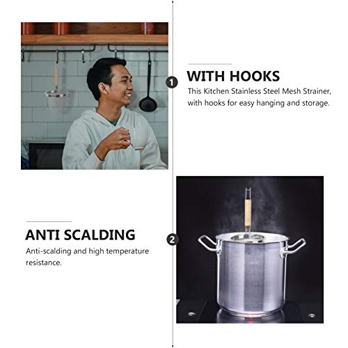 Il design a cesto profondo mantiene il cibo sicuro per un facile trasferimento e servizio. Il lungo manico in legno tiene le mani lontane da danni, cucinare, riscaldare e sgocciolare di pasta, pasta, spaghetti, palline di matzo, verdure bianche, friggitrici e molto altro ancora.
