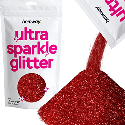 Hemway Ultra Fine/Extra Fine Sparkle Glitter 1/128" .008" 0,2 millimetri cosmetici sicuri - Red